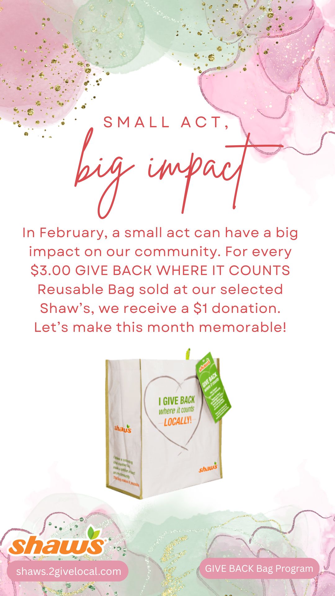 TOOL TIP: If you decide to create your own social media post, remember to include a photo from the Image Bank of the Give Back Bag so your followers know what to look for at your selected store location!