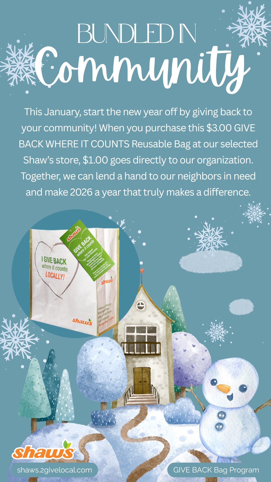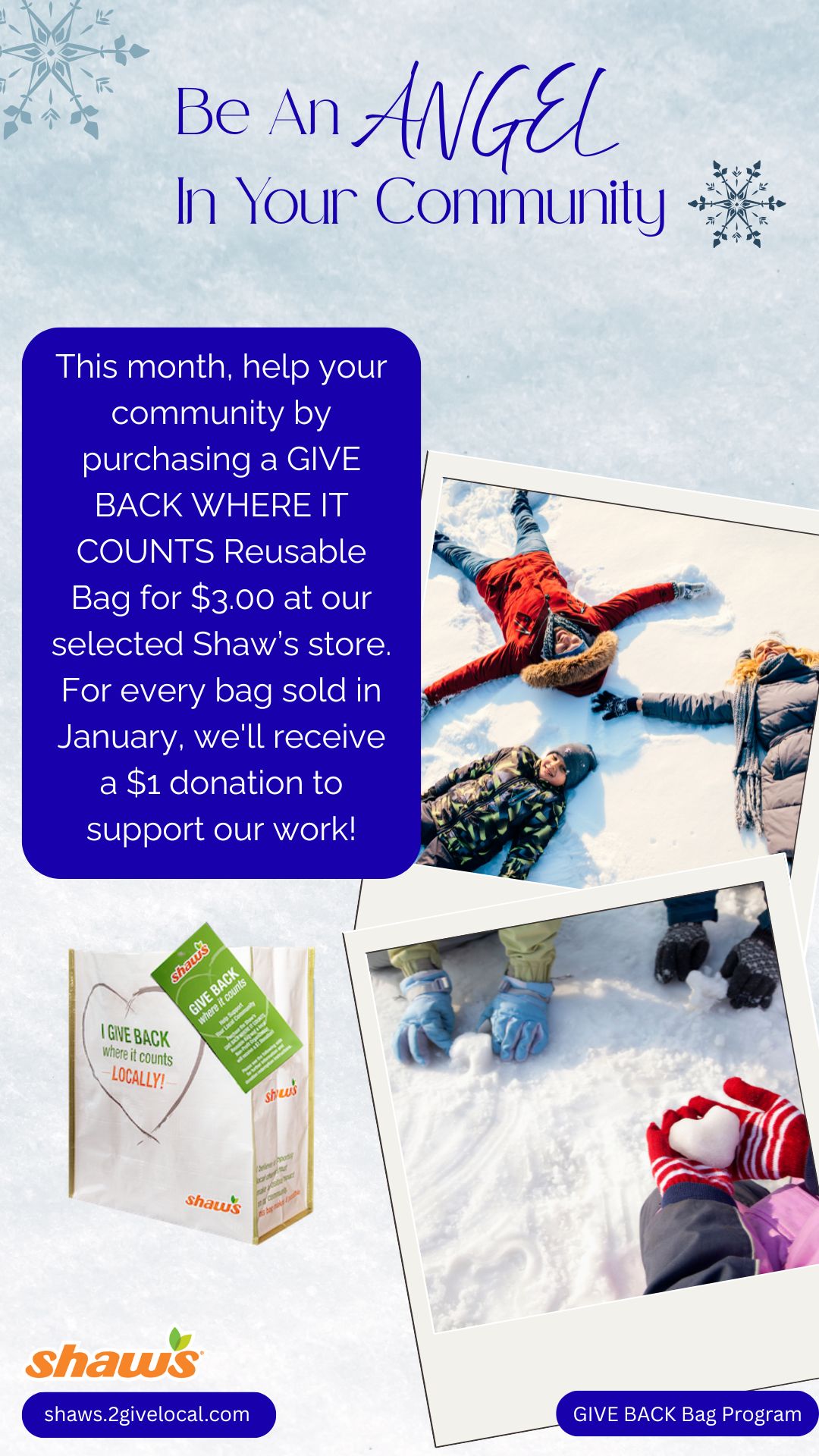 TOOL TIP: If you decide to create your own social media post, remember to include a photo from the Image Bank of the Give Back Bag so your followers know what to look for at your selected store location!