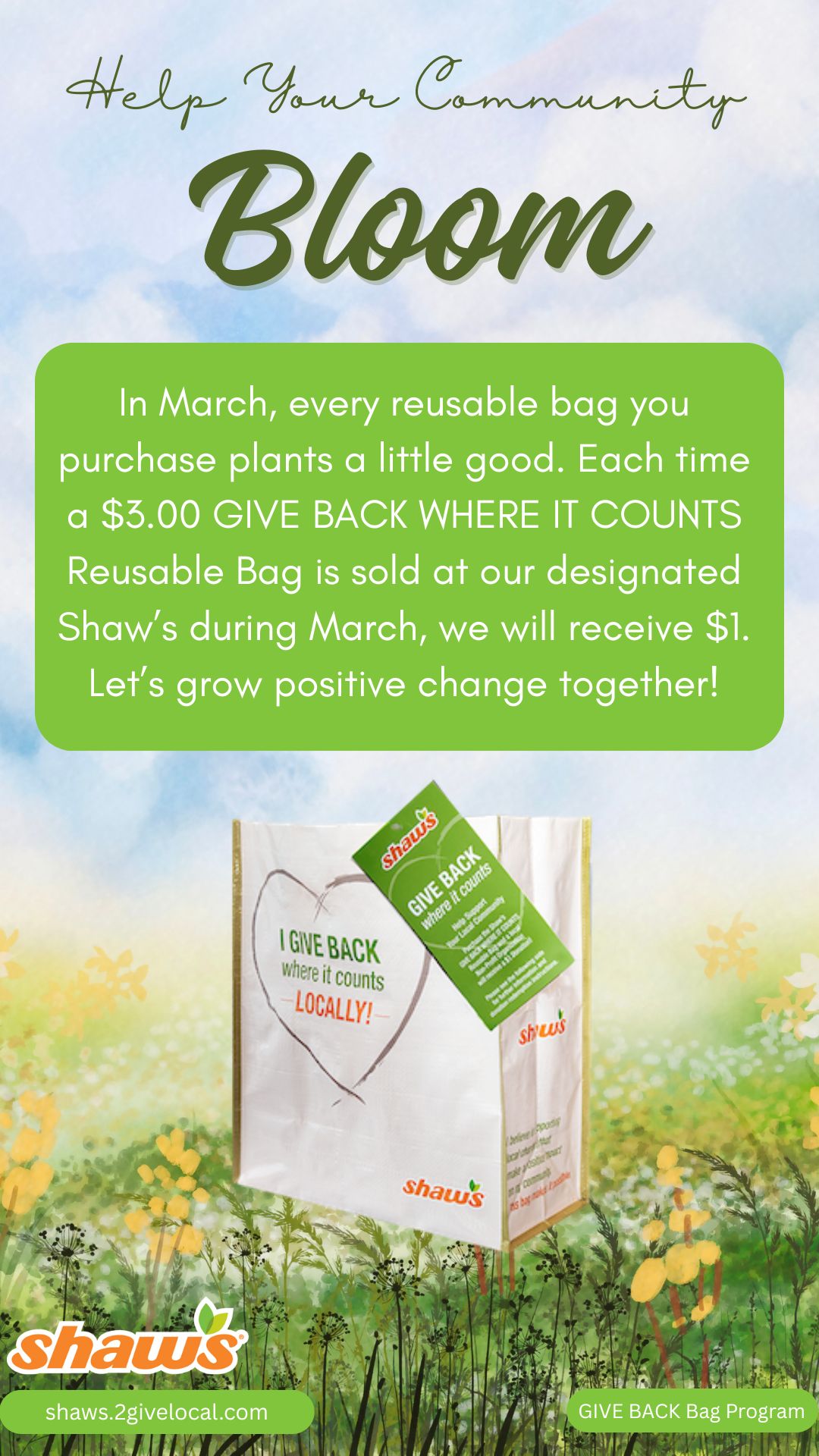 TOOL TIP: If you decide to create your own social media post, remember to include a photo from the Image Bank of the Give Back Bag so your followers know what to look for at your selected store location!