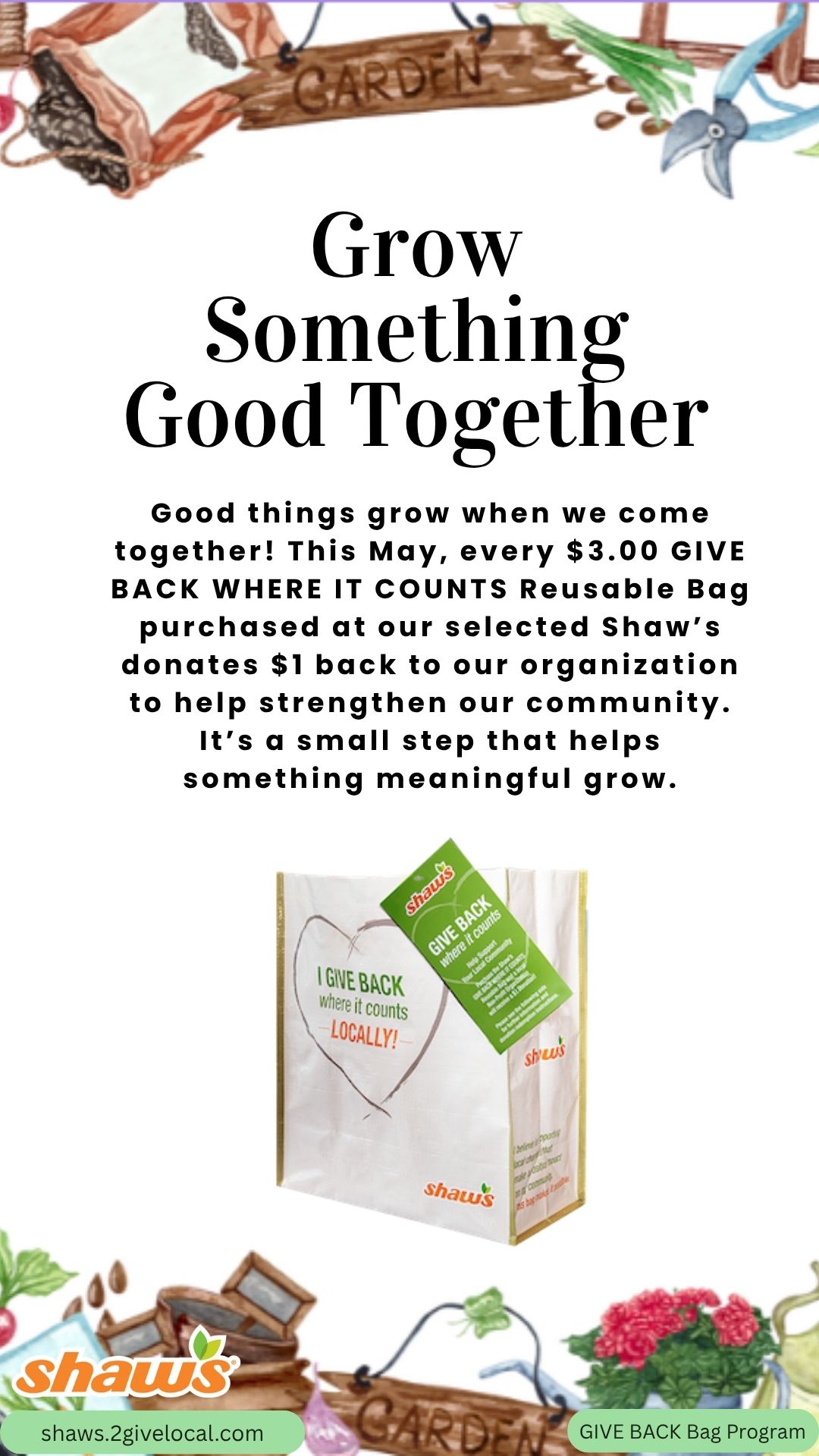 Reach new supporters by putting up flyers around your community! Add your organization’s name and selected store location by inserting a text box directly on the downloaded tool. Or download, print, and write in the spaces provided. The more flyers you put around town, the more people will come to support your organization!
