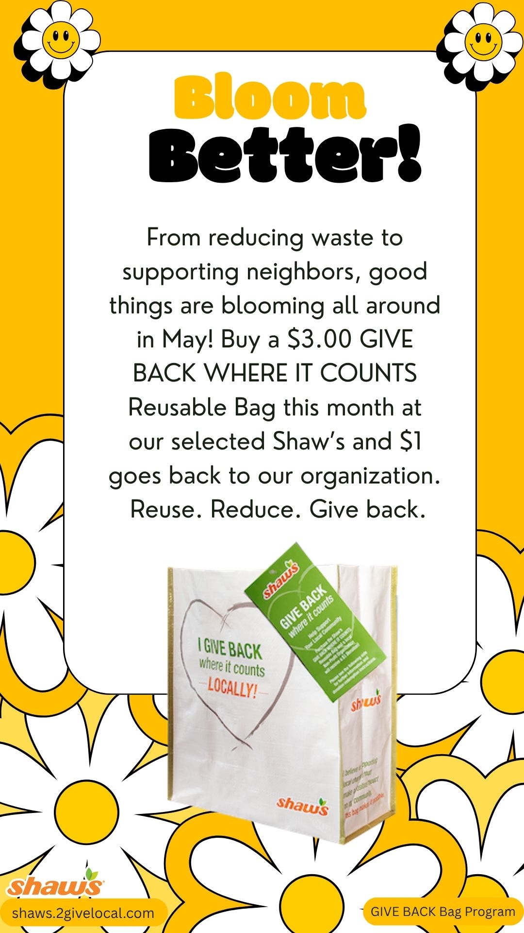 TOOL TIP: If you decide to create your own social media post, remember to include a photo from the Image Bank of the Give Back Bag so your followers know what to look for at your selected store location!